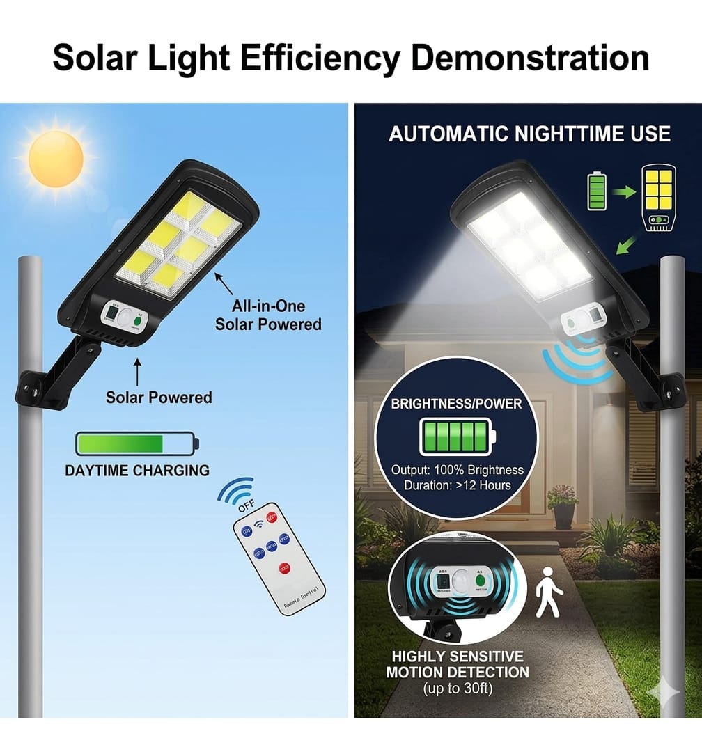✅ বহিরঙ্গন নিরাপত্তা ব্যবহারের জন্য উচ্চ উজ্জ্বল COB মোশন সেন্সর সৌর এলাকা আলো