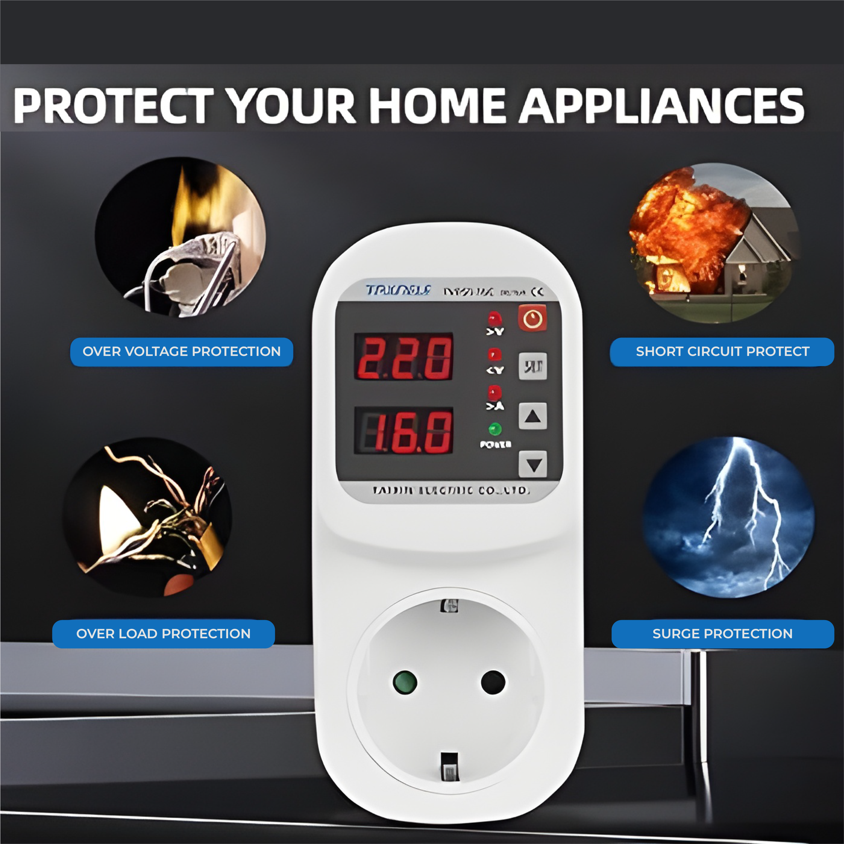 Voltage protector with Voltage & Amp Display (ইউনিভার্সেল প্লাগ)