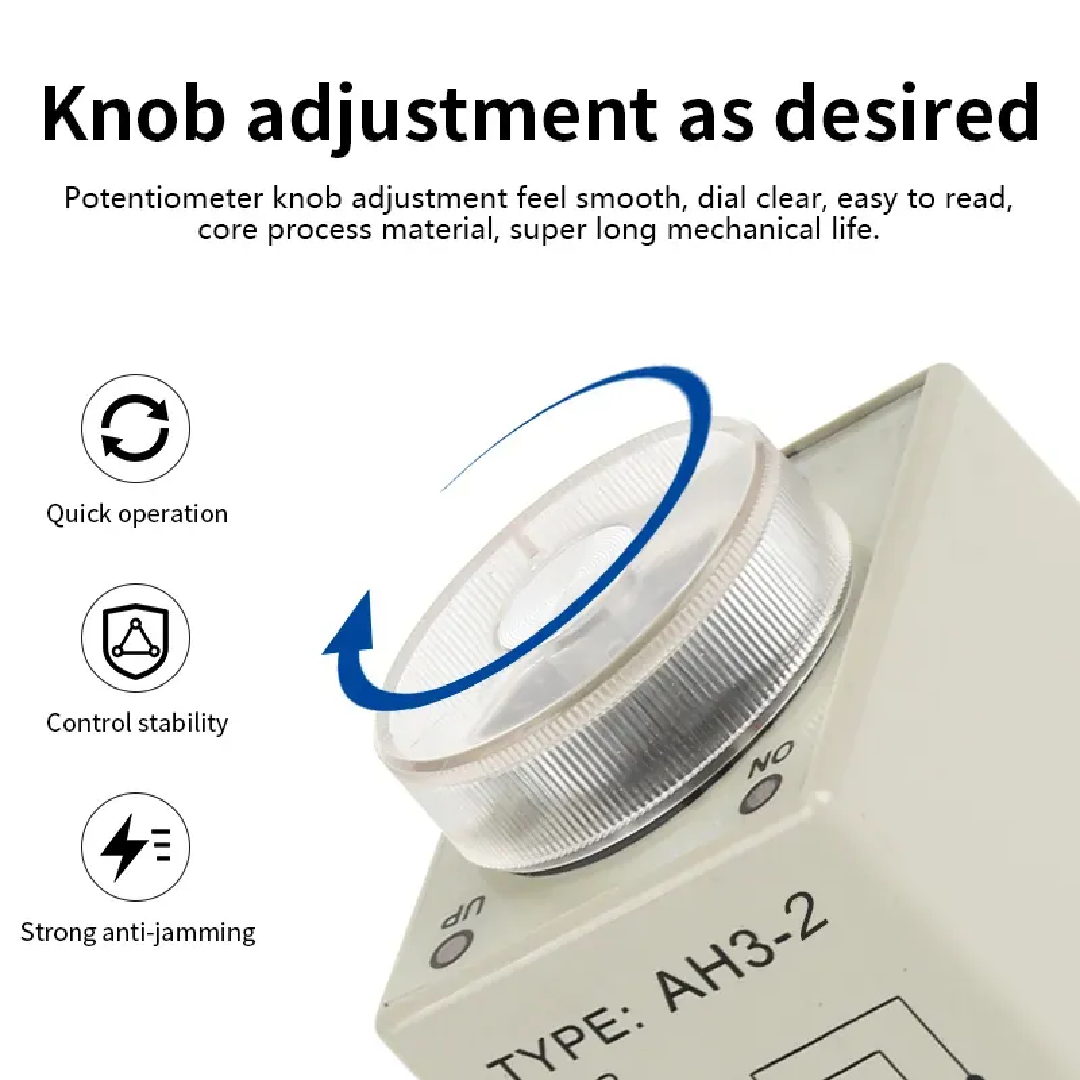 ✅ Adjustable Timer: Knob-based adjustment allows precise setting of delay time within the specified range.